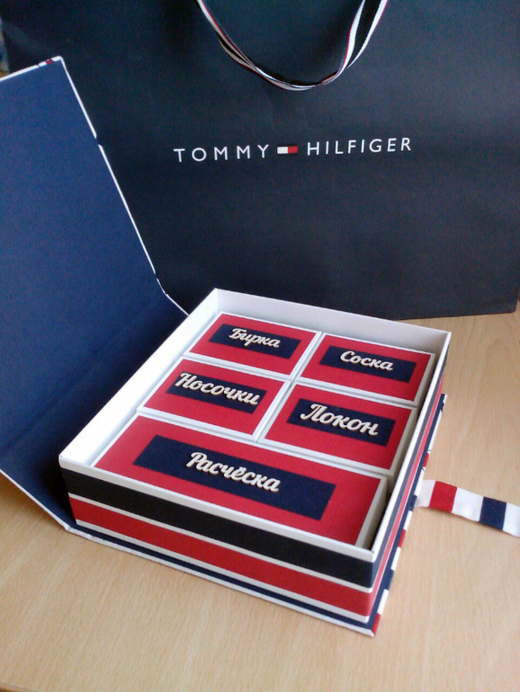 Когда я задекорировала коробочки тонированной бумагой, цветовая гамма напомнила мне Tommy)))