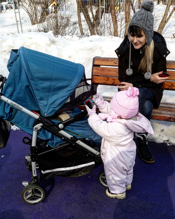 Всем привет. Вчера был очередной солнечный денек гуляли 3.5 часа . На всю неделю вперед. Завтра наконец-то наш папа вернется из командировки. Ждем с нетерпением. Всем отличного начала недели