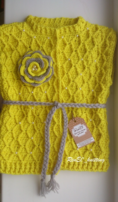 Связался вот такой красивый детский жилетик и получил название "Желтое безумие" ))) Авторская работа! Очень теплый!