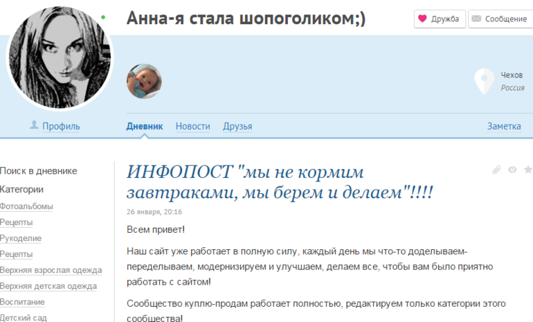 Это был пост Анны про их замечательный сайт Бебиблогия, сделанный и созданный за два дня!