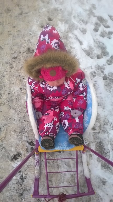 Кто на чем, а мы сегодня на санках! Наша первая поездка прошла удачно, дочка в восторге, хоть и немного побаивалась в начале и крепко держалась за санки))