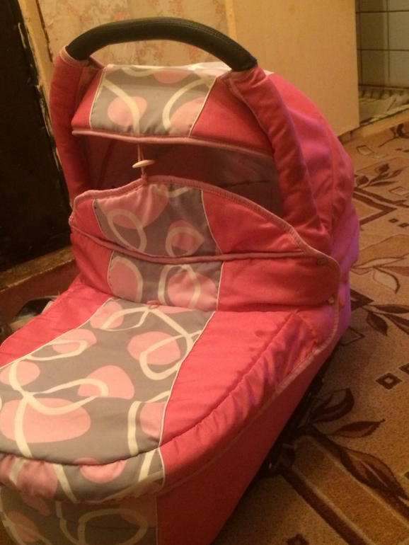 коляска тако 2 в 1 коляска тако 2 в 1,для принцесски,на коляске есть дефект на прогулочном блоке сломана одна часть от крыши на использование сильно не влияет,и спустилось колесо стояло шасси на балконе накачать нет возможности.
