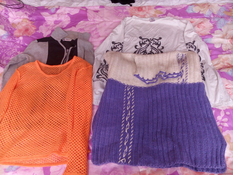 Оранжевая 44 размер,серая 42р,белая мка р.,и свитор 44-46 размер