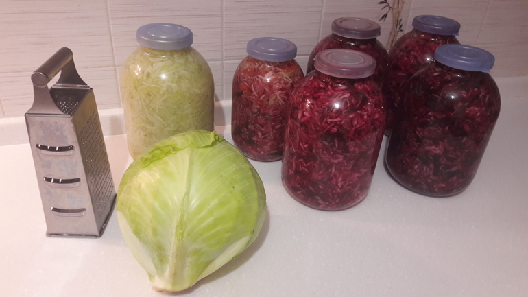 На фото капуста+свёкла и капуста+яблоко, с морковью тоже сделала но в кастрюле заквасила.