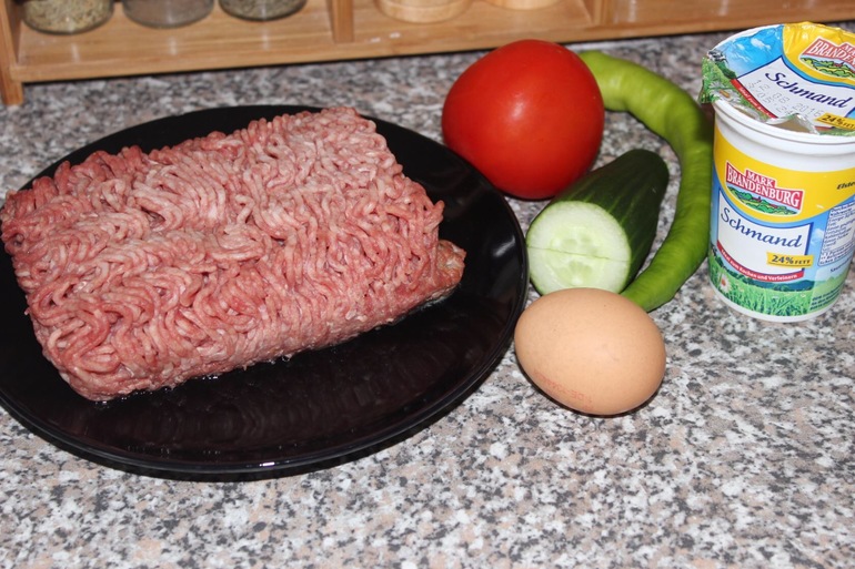 Фарш (на один примерно 100-150г) Яйцо (на каждую бризоль, по одному яйцу) Пищевая плёнка Начинка: Майонез+чеснок или сметана+горчица+ чеснок Свежие овощи Сыр плавленный в пачках, как для чизбургера Нам нужна тоненькая лепёшка из фарша, сначала вымешиваем фарш руками, солим, растилаем пищевую плёнку, укладываем на неё фарш, сверху накрываем опять плёнкой (котлета между получается) и формируем руками лепёшку
