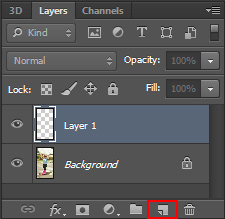 2. Создаем новый прозрачный слой поверх основного (кнопка отмечена красным):
