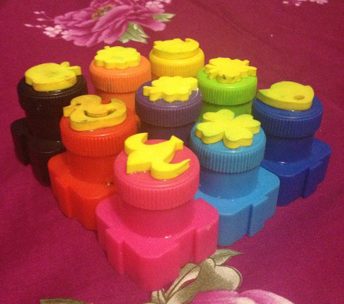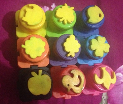 И последнее. Это наши пальчиковые краски. Бывшие. Они закончились. Но их форма в виде пазла, очень удачна. Их тоже на последок сложили.