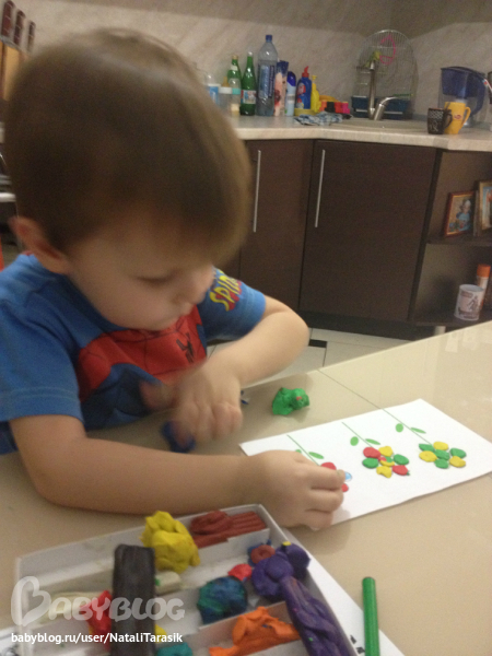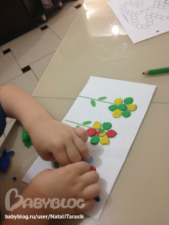 Дальше шаблоны для лепки - цветы и бабочка. Я через один отметила на лепестках нужный цвет. нужно было строго соблюдая очередность. оформить цветочки.