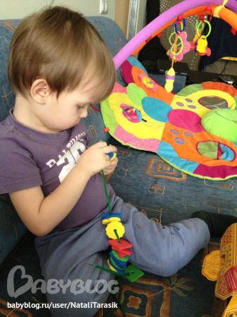 Начали со шнуровок. Поочереди нанизывали геометрические формы.