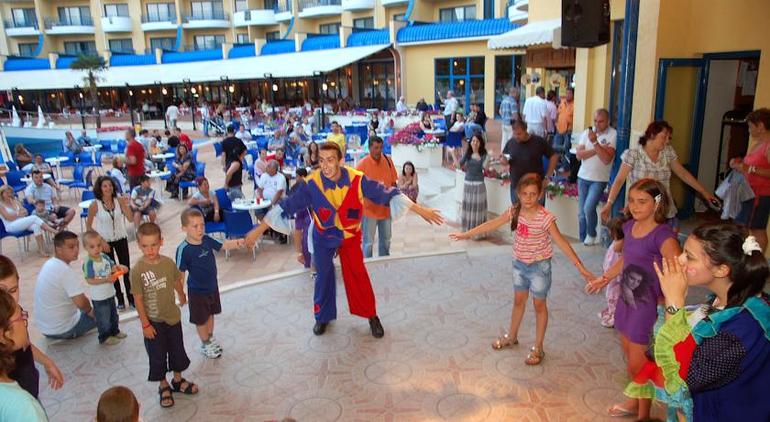 Входит в большой комплекс из нескольких отелей, где каждый найдет развлечения на свой вкус. Сам курорт расположен в природном парке в нескольких километрах от Варны. Отдых здесь подойдет семьям с детьми всех возрастов, включая малышей. Хорошая детская площадка с батутом и водные горки дополнят прекрасный песчаный пляж с бесплатным оборудованием.