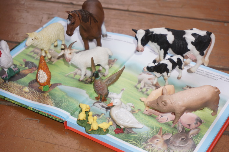 Обычно одновременно с прочтением этой книги мы, уютно расположившись где-нибудь на крылечке в предзакатном солнце, изучаем игрушки животных, стучим в дверь, рассматриваем часики и издаем разные чудесные звуки.