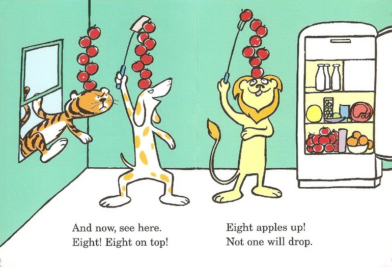 Следующая книга - это еще одно произведение Доктора Сьюза, написанное для малышей, - "Ten Apples Up On Top".