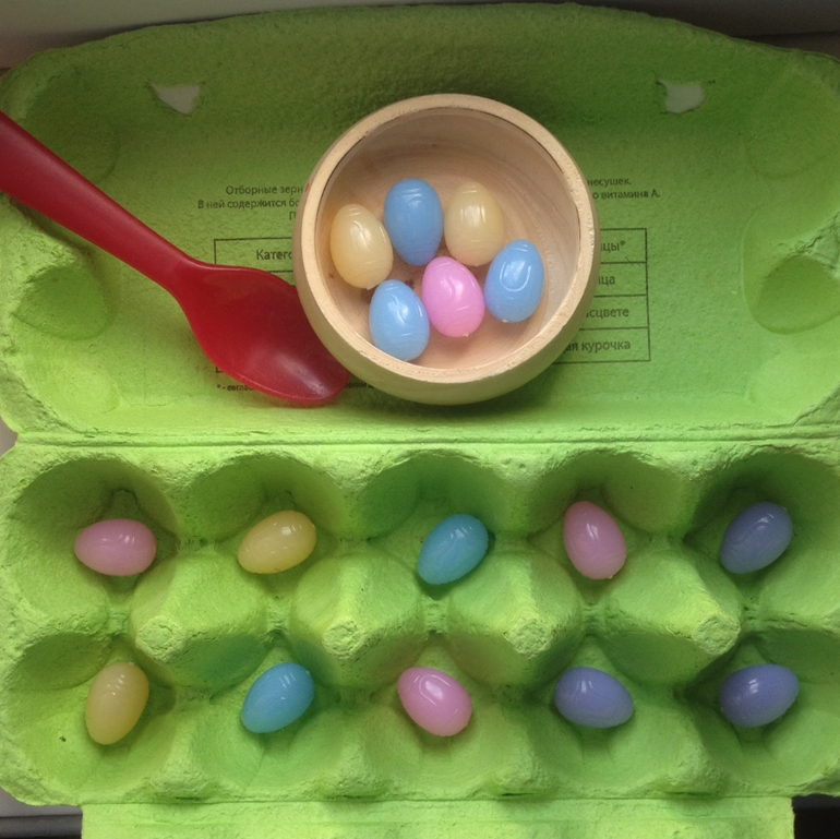 Озорной цыпленок все время прячется. Пробуем отгадать, за каким яичком он спрятался. Это развивает интуицию. У нас с этим пока не очень.