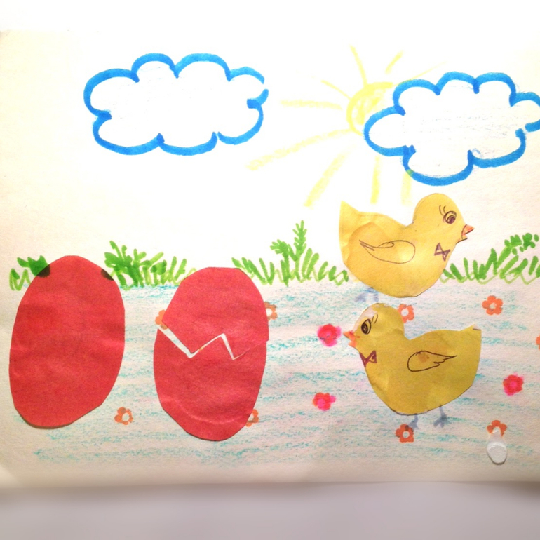 Наша курочка снесла яички и высиживает их. Приклеиваем!