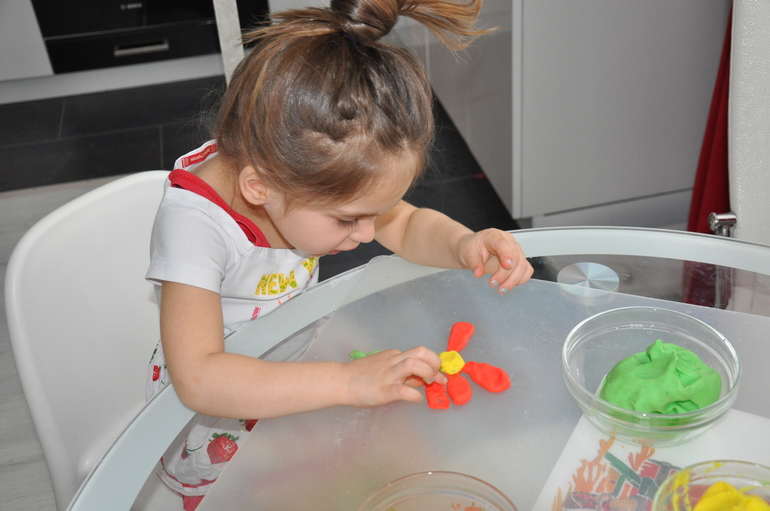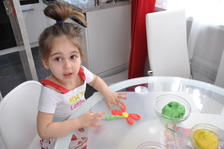 доченька тут же уселась лепить)))