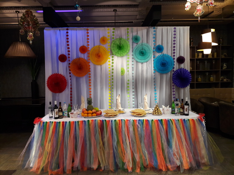 Если же праздник будете отмечать в ресторане и кафе, то воздушными шарами можно обыграть различные зоны празднования. Можно сделать фотозону из воздушных шаров, поставить на столы букеты из воздушных шаров, украсить входную группу аркой или гирляндой из воздушных шаров.