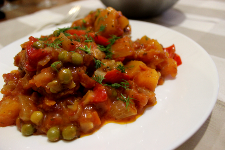 За 5 минут до готовности кладем в МВ горошек (замороженный можно предварительно не размораживать).