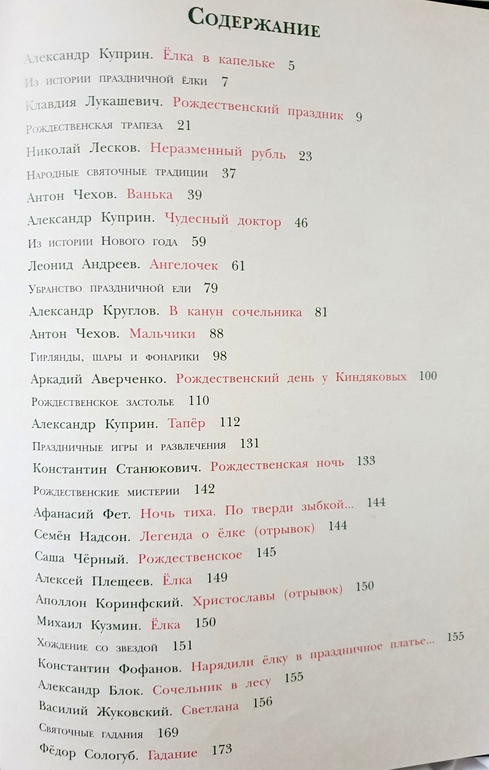 Содержание книги очень разнообразно. Здесь и рассказы писателей-классиков, Рождественские стихи (очень выручили, когда надо было найти и выучить к уроку), исторические справки о Святочных традициях, застолье, праздничных забавах и играх. Конечно же все начинается с истории праздничной елки, а в конце есть даже описание Святочных гаданий. Плюсом дается информация как сделать гирлянду, фонарик и шары. И несколько старинных рецептов.