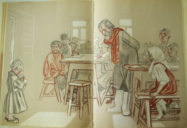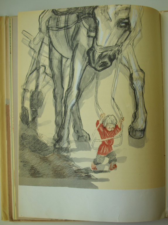 Рисунки Пахомова здесь - изумительны, есть и краска, и карандаш, рисунки крупные, на всю страницу почти везде, шрифт тоже большой, для первого чтения книга идеальна. Любила ее в детстве безумно. И берегла.