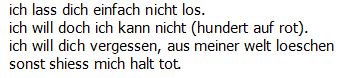 jedes mal, wenn ich mich erinnere, wie betrunken und verliebt wir bei unserer "hochzeit" den "walzer" getanzt haben, will ich auch sterben.