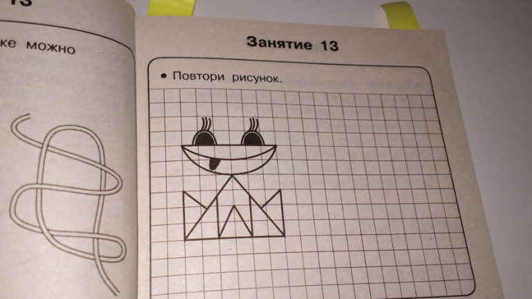 Единственное, что не понравилось - это задания с графическим диктантом. Задания само по себе хорошее: оно тренирует выработку навыка определения сторон ( влево, вправо, вверх, вниз), но вот результат по выполнению задания ребёнка не радует.