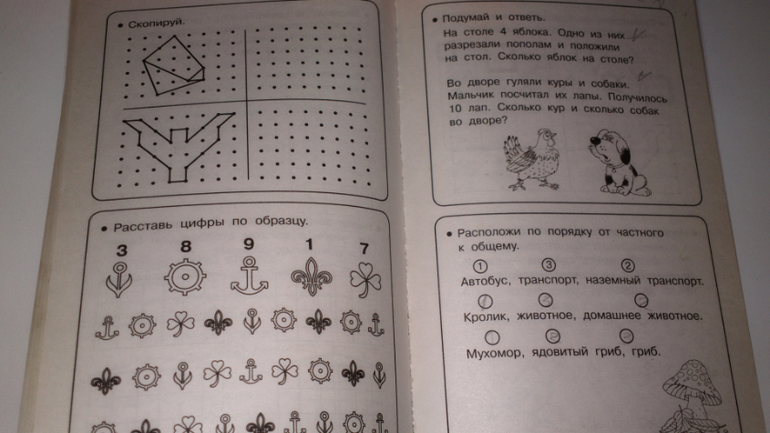 Есть здесь и логические задачи, и задания на развитие внимания.