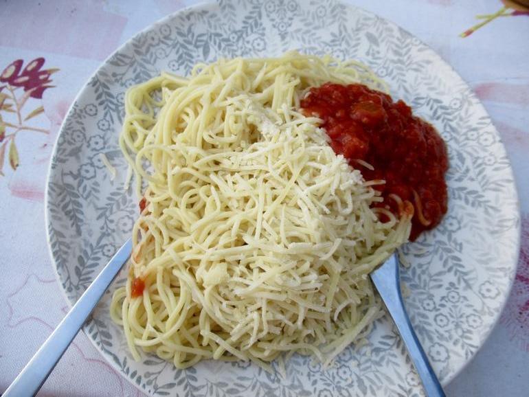 4. Спагетти с томатным соусом и сыром эманталь. Воистину, самое ленивое блюдо :)