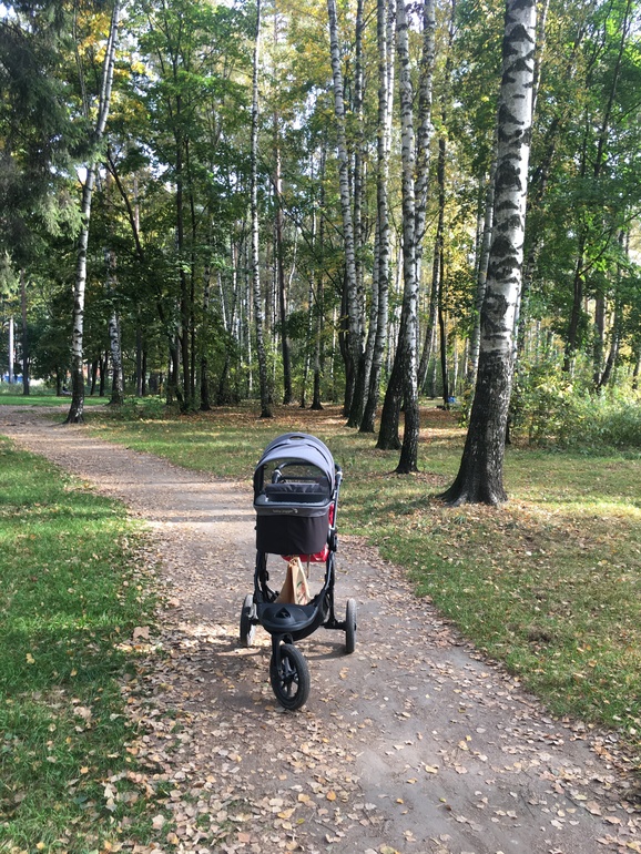 Мне только остаётся ходить и получать удовольствие от прогулки)))) большие колёса уверенно едут по любой дороге, скрадывая все неровности и ухабы.