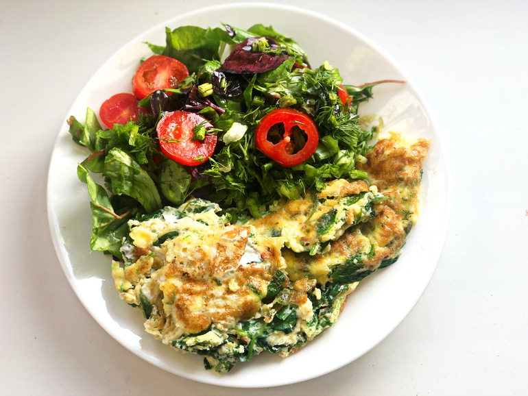 Есть у мужа в их азерб-ой кухне немного другой рецепт: яйца и много-много разной всякой зелени, готовится также. А я решила со шпинатом себе попробовать и блюдо теперь прям любимка ❤️