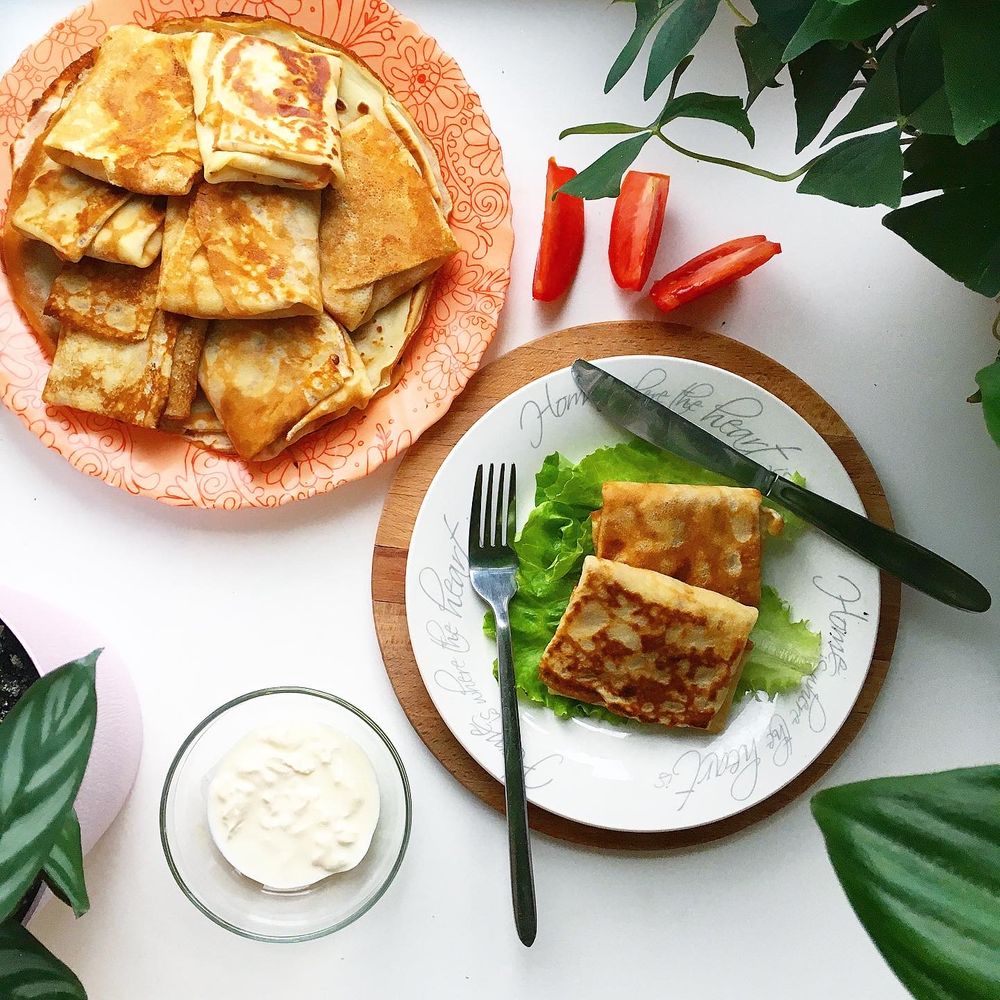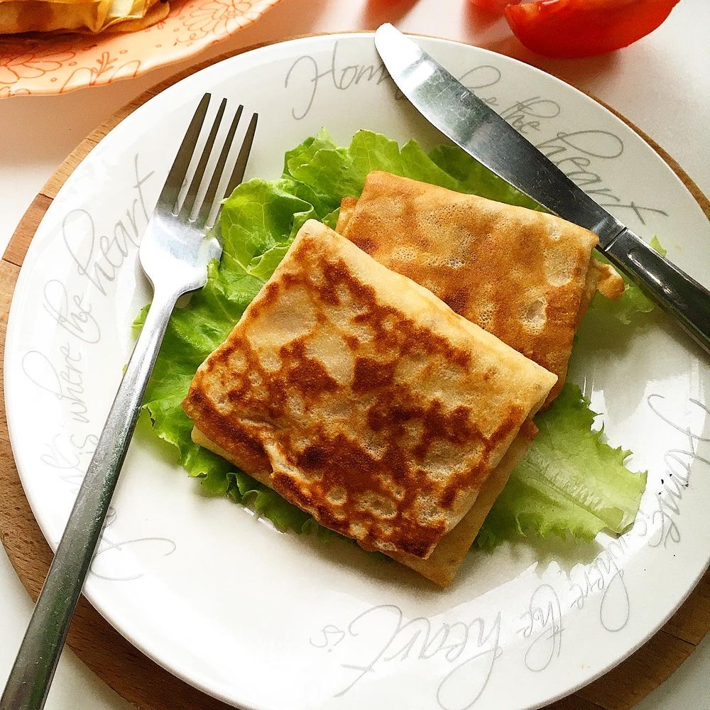 Как насчёт блинчатых конвертиков 🥞 с сыром 🧀 , ветчиной 🥓 и помидорами 🍅?