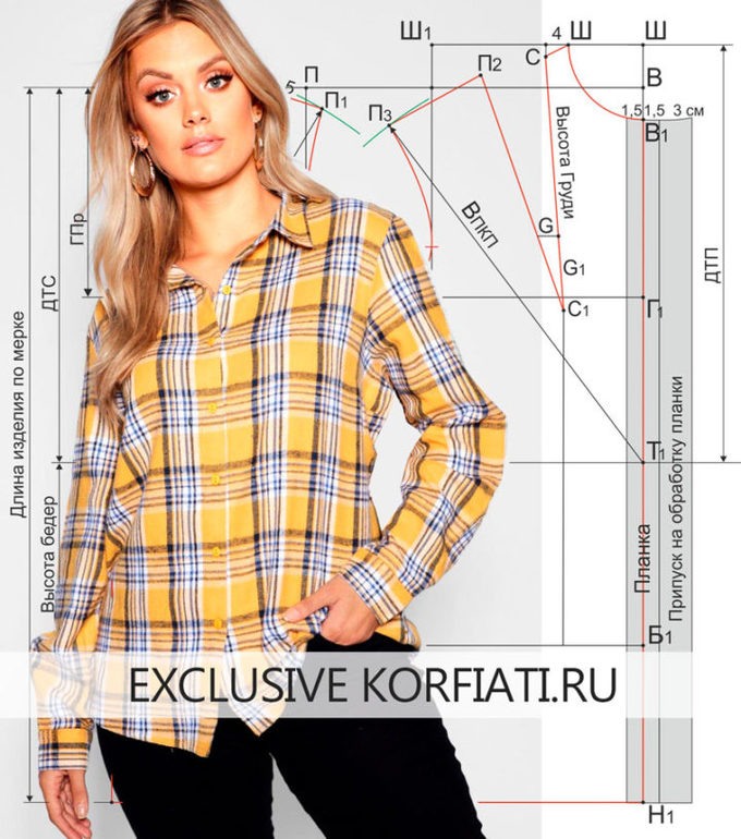 ВАЖНО! Для моделирования фасона приталенной блузки, используйте стандартную базовую выкройку платья.