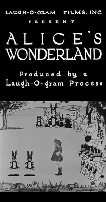 Героиней первого мультипликационного фильма в 1924 году стала Алиса, широко известный книжный персонаж Льюиса Кэрролла. Серия сюжетов «Алиса в стране мультипликации» принесла Диснею первый успех и первые заработанные любимым делом деньги.