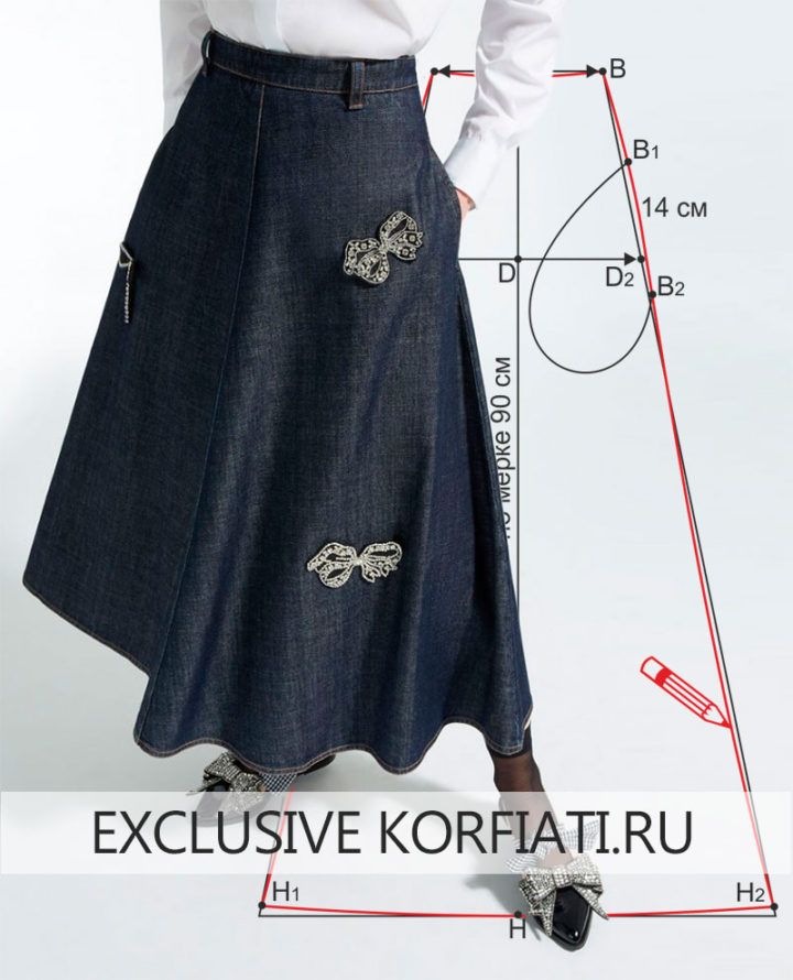 Выкройка юбки четырехклинки