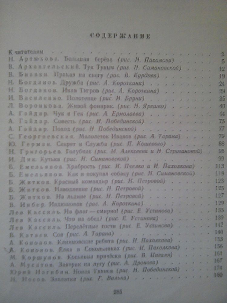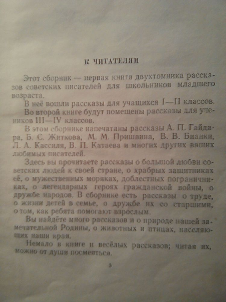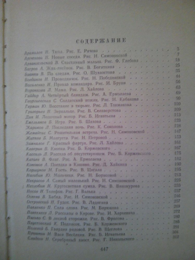 Рассказы для детей от советских писателей в формате небольших текстов, которые тогда печатались в прессе, в детских газетах и журналах... Рассказы серьезные и смешные, про дружбу и школу, про войну и подвиги, про домашний быт и колхозную жизнь... Без особой идеологии, на уровне повествования от взрослых товарищей молодому поколению... Добрые рассказы - вот самый главный критерий!!! Иллюстрации отличные, в начале каждого рассказа и в конце... Авторы многочисленны - и знаменитые, и на очень... Книги сшитые и время над ними было не властно - состояние и правда отменное!!!