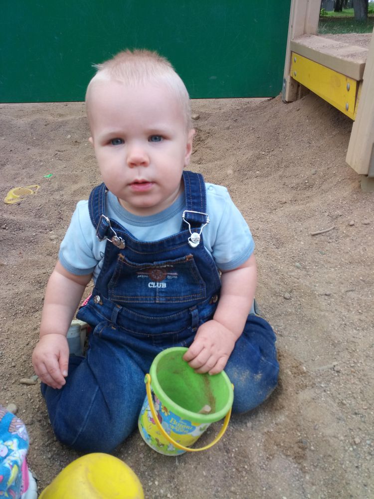 Как же круто, когда ребёнок ходит. Хотя за ним сейчас приходится бегать, ловить, контролировать, но это реально здорово - когда он устаёт на улице. Олег сейчас просто обожает мячик и песочницу. И лазить по лестницам. Учится кататься с горки.