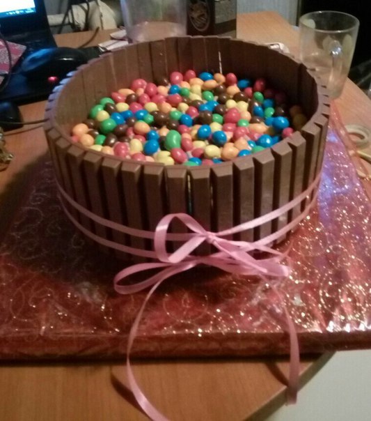 По первому торту- постарайтесь в следующий раз плотнее укладывать колбаски, либо хорошенько покройте кремом верхний слой, на который будете их выкладывать. Т.к. выглядит не аккуратно- крем, местами выглядывает бисквит, ягоды, сверху чего- то лежит. По второму торту. Ему не хватает высоты самого бисквита. Шоколадные борта довольно высокими получились. Либо нужно было досыпать конфет так, чтобы тортик не казался низенькой лепешкой. Третье- фон. Старайтесь фотографировать так, чтобы рядом не было стаканов, чьих-то пол-лица и пр. Из - за этого взгляд на торте не фокусируется. А в остальном- дерзайте и все получится!