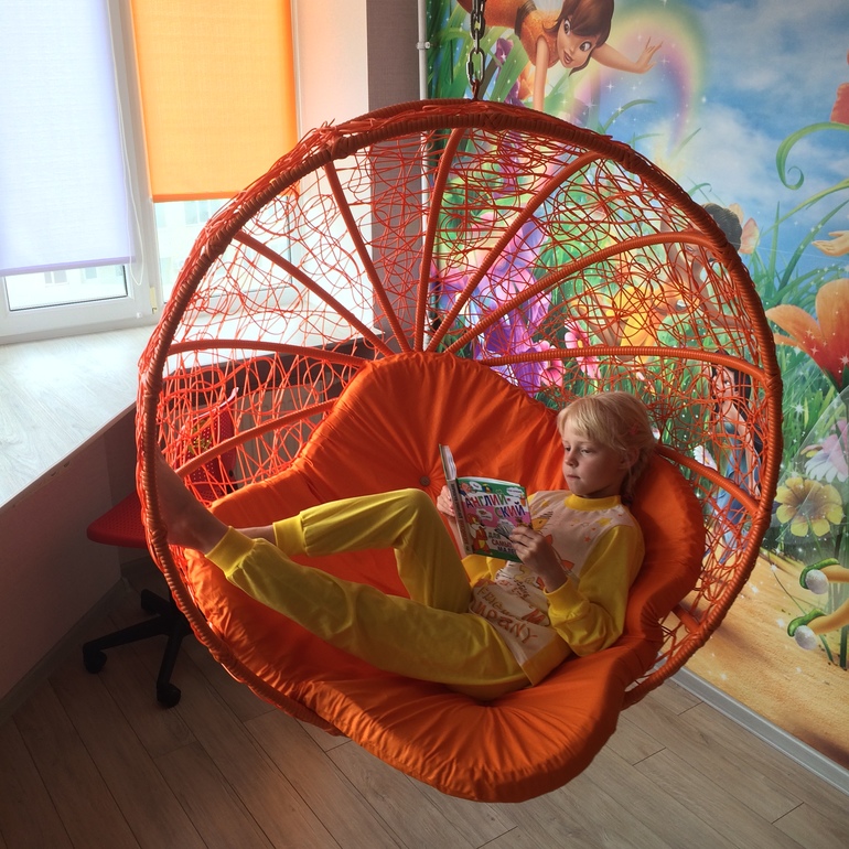 Всем добрый день. Хочу поделиться еще одной мелочью. Всем кто не любит гулять или на улице холодно и ветрено, но любит кататься на качелях и чувствовать себя не совсем "древней и разбитой теткой". А также если у вас позволяет площадь в квартире или доме......то можно повесить или поставить на подставку очень приятную мелочь....- качели из полиротанга. Когда мы въезжали в свою новую квартиру, то решили порадовать ребенка (7 лет) чем-то необычным и сделали ей качели в детской. Ребенок и ее подружки просто в восторге от данного объекта при каждом сборе у нас дома....Я и сама люблю в нем посидеть с чашкой кофе вечером (когда все дети уснули) или с книгой в сон-час. ......Мужу случайно сделав одно кресло для семьи пришлось организовать даже мастерскую и делать их по необходимости если кому-то они нравятся.Так наши кресла (а они могут быть разного цвета и могут быть на подставке) уже уехали в Тюмень, Краснодар и Кострому.....Поэтому всем советую "выделись из серого-порадуй себя чем-то необычным". Нам (девчонкам в декрете) этого так не хватает..