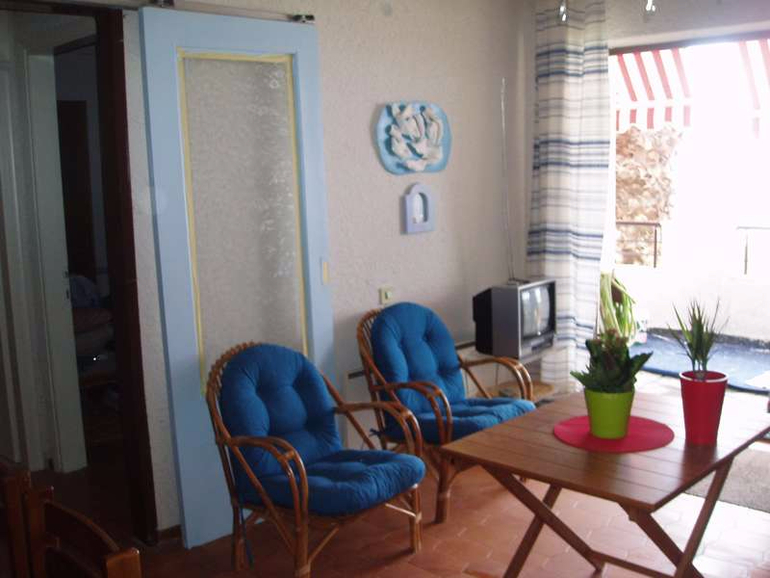 Апартамент расположен на первом этаже, имеет две спальни (одна с двуспальным раскладывающимся диваном, другая с односпальной кроватью и двухъярусной кроватью), гостиную с кухней, ванную комнату и большой балкон. Площадь апартамента: 65 кв. м. Полностью обрудованная кухня, кондиционер, стиральная машина, барбекю, стулья-шезлонги для пляжа, интернет wi fi.