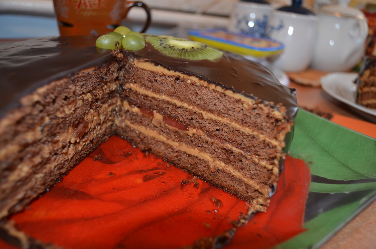 Вчера у мужа был ДР и испекла ему тортик. Он очень любит шоколад, поэтому старалась максимально сделать его шоколадным.