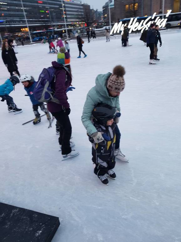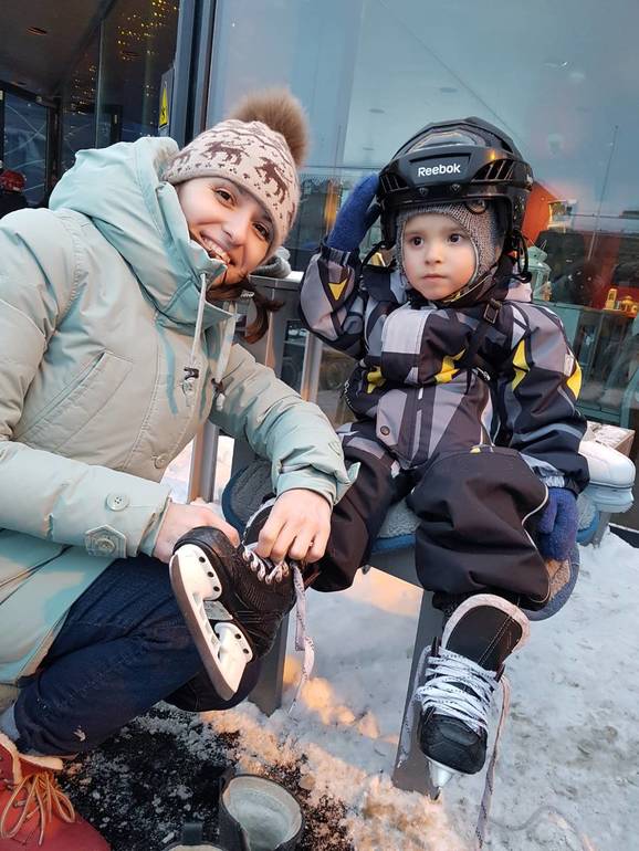 Доехали хорошо. Но за 3,5 часа никто глаз не сомкнул. Приехали, заселились в апартаменты возле вокзала. Еле уговорили сына пойти поесть, потому что он увидел каток и стал ныть что ему надо коньки. В ресторане ничего не ел, ждал нас. Потом всё-таки пошли на каток. Взяли на прокат коньки и только выползли на лёд Миша сказал что уже хватит и он накатался. В общем первый раз на коньках не впечатлил😒