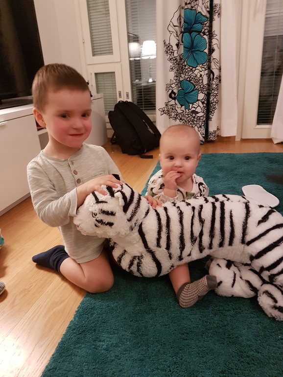 Пошли в апартаменты и тут Миша , видимл совсем устав стал плакать и проситься домой. Положение исправил тигр😊