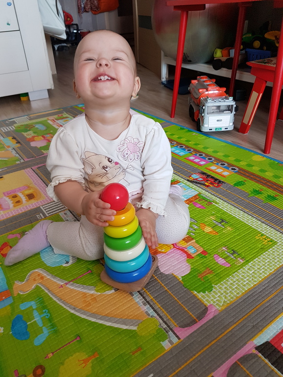 Мамина дочка, а особенно папина😊. Когда папа приходит с работы, несётся к нему на всех парусах и улыбается во весь рот, тянет ручки чтобы скорее взял. Улыбашка ещё та😁.