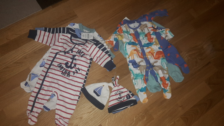 Всем привет! На днях прикупила еще немного тряпочек для мелкого: 3 слипа в морской тематике 62размера и 3 с динозаврами -56 размера. К первым трем докупила еще шапочек-красота!