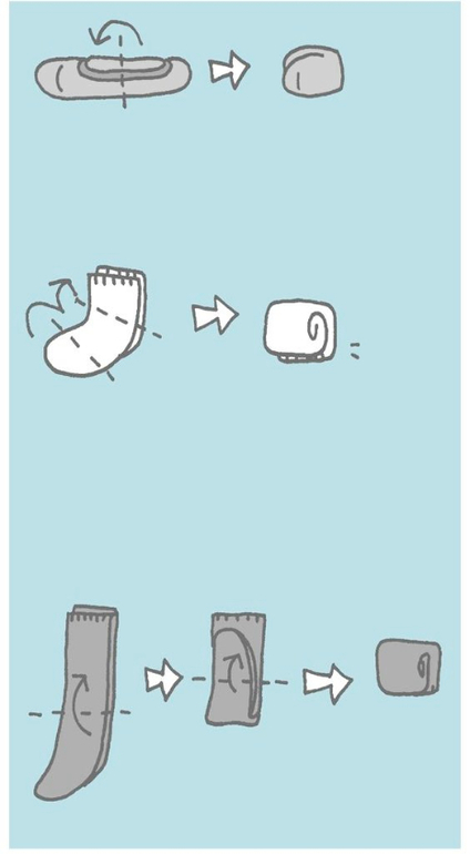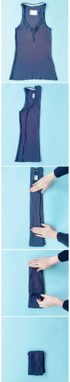 Прежде чем закручивать вещи валиком, необходимо их сложить в небольшой прямоугольник. Для каждого типа одежды - своя инструкция, как это сделать.