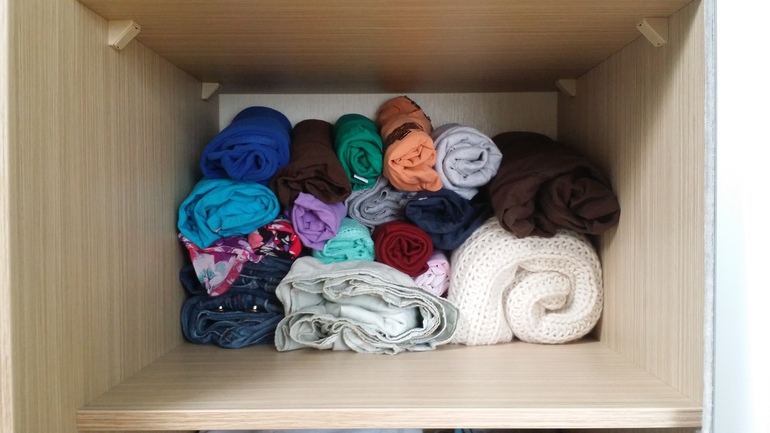 Признаться, изначально к системе Мари Кондо я отнеслась скептически: как сложенные валиком вещи могут обеспечить порядок и освобождение лишнего места? Но, как оказалось, очень просто. И очень эффективно.