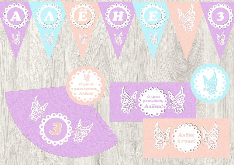 Этот набор был подготовлен специально в цветах наряда именинницы. И персональное пожелание - бабочки.