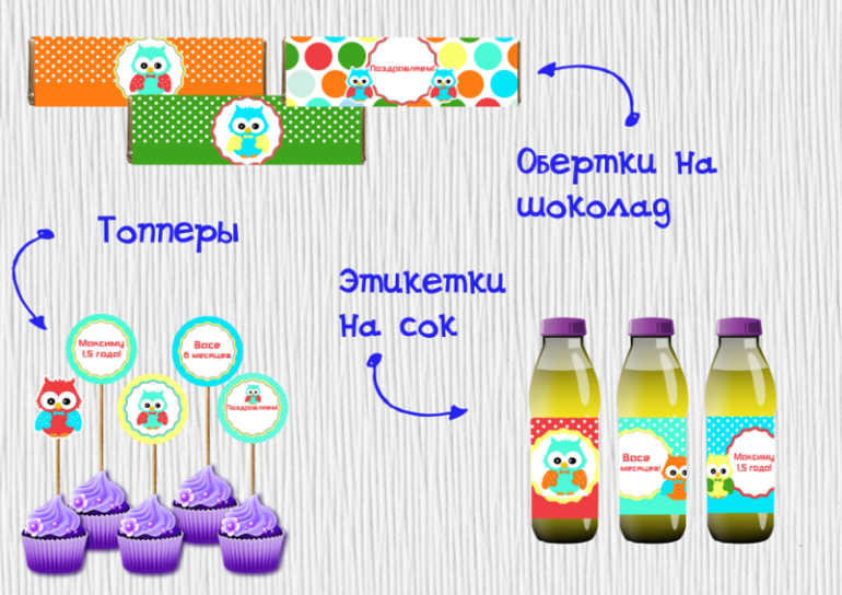 Готовые наборыЯркий набор для праздника мальчишек - погодок с горошками и совушками. Можно сделать в девчачьем варианте