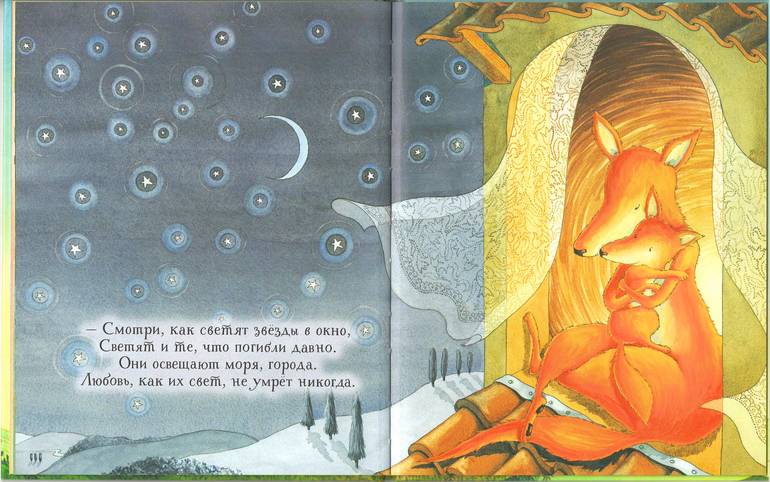 У Малыша Лисенка было очень плохое настроение, он злился, топал ногами и кричал. А потом расплакался, ведь малыш подумал, что из-за его плохого поведения Папа Лис (в книге он зовется Большой) перестал его любить. И успокоить ребенка смогли только нежные, убедительные и умиротворяющие слова Большого - я буду любить тебя всегда. И эта любовь не ослабеет, что бы ни случилось. Простые и понятные слова, но как много они могут значить для совсем еще крохи. Строки на столько трогательны, что у меня в конце прочтения наворачиваются на глаза слезы.