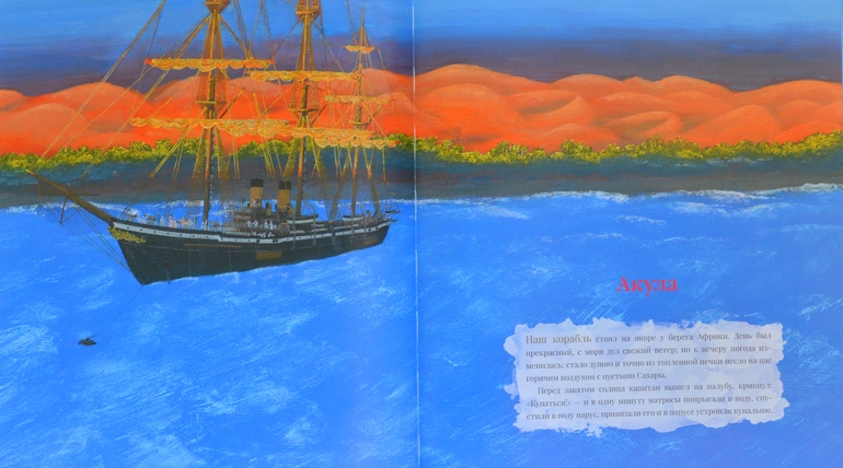 Это не просто красивое и интересное издание. Это шедевр, с какой стороны не посмотри. Во-первых, текст. Три истории (одни из самых известных, многим знакомых с детства) "Азбуки" Льва Толстого: Прыжок, Пожарные собаки и Акула. Это классика детской литературы, с которыми однозначно нужно познакомить ребенка. Их смысловое наполнение, образовательную и воспитательную ценность сложно недооценить.