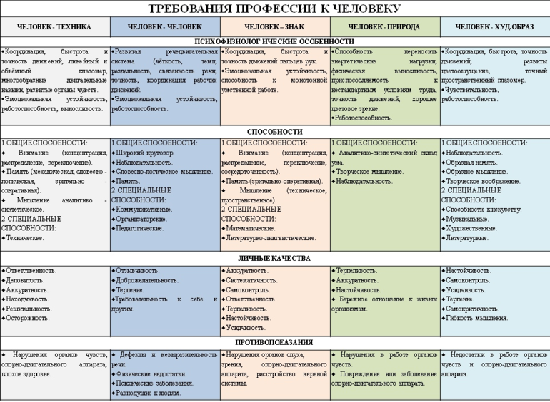 Все эти профессии предъявляют разные требования к своим работникам.